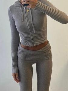 Introducing our stylish Illumino360Fitness 2025 Knitted Hoodie Cropped Top and Pants Set - the perfect choice for your casual outfits!